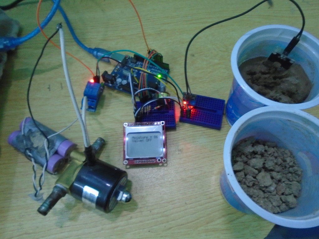 In this project, we are going to build an automatic irrigation system using Arduino which senses the moisture of the soil and opens or closes the valve according to the moisture value. The moisture value and the valve status is shown on the Nokia 5110 LCD display.