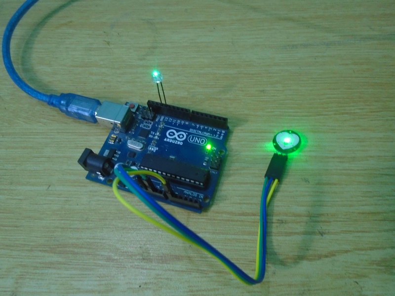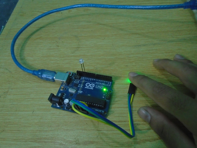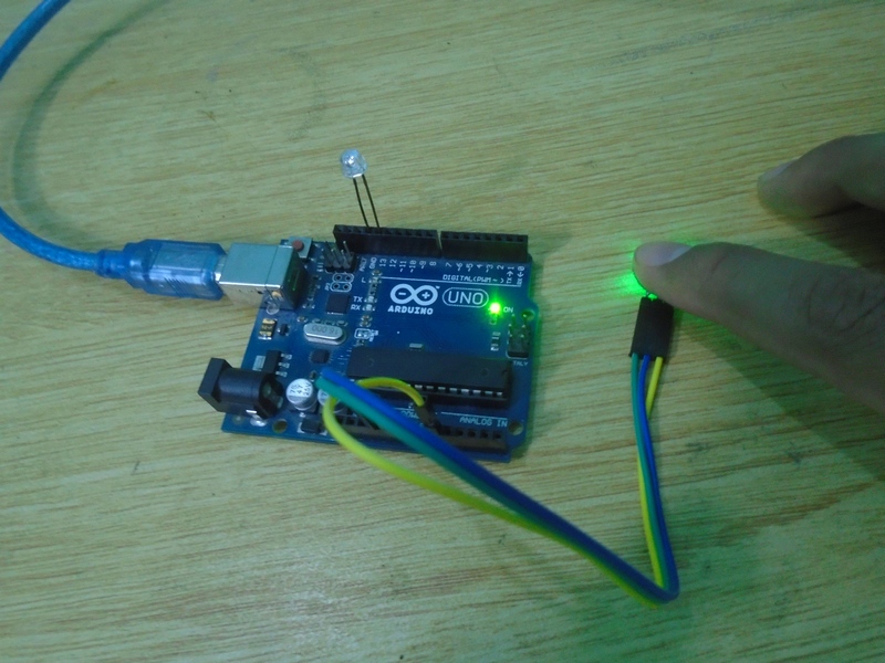 After that, connect the LED to pin 13 and GND of Arduino as shown in the figure below. The LED will blink according to the heart beat.